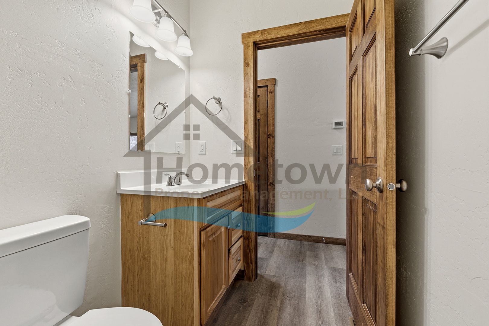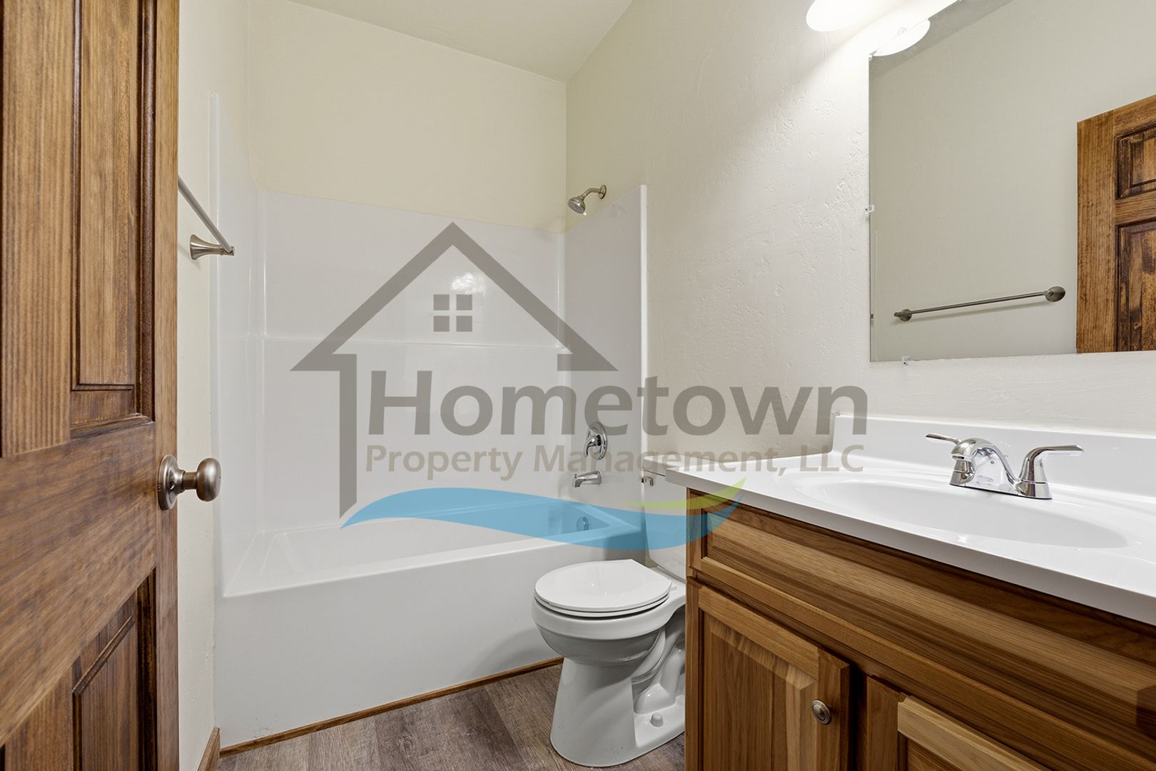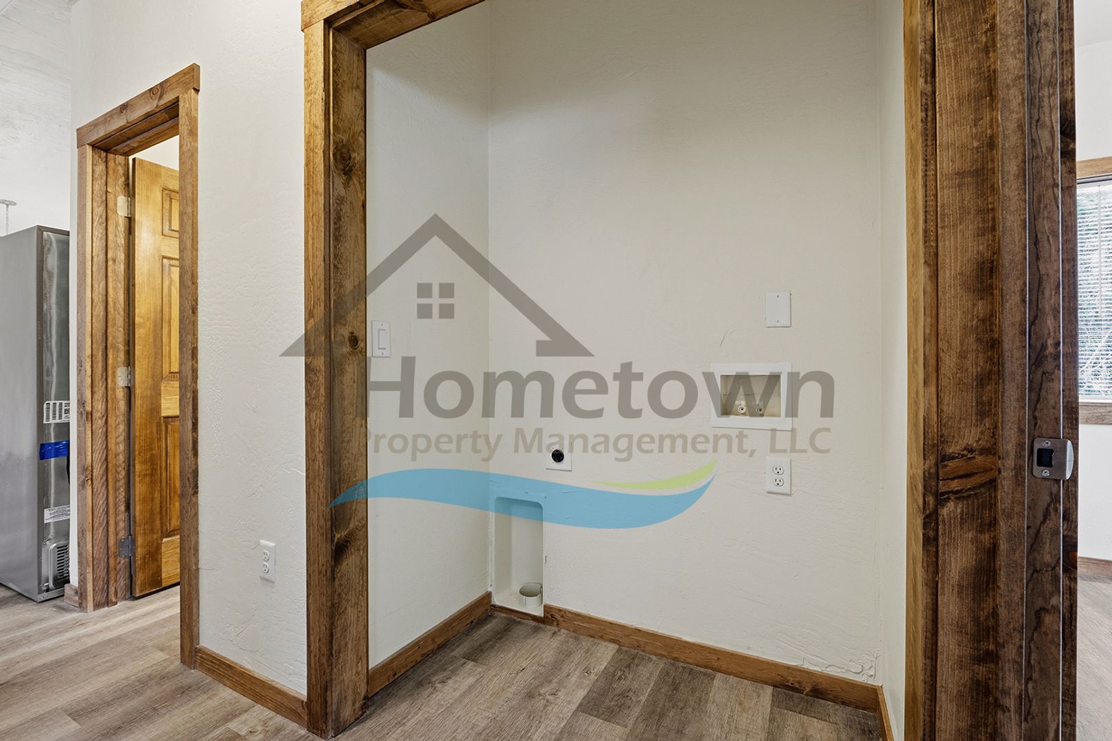 The bathroom is a full bath with a tub and shower and a sink vanity with cupboards and drawers. The laundry nook has washer and dryer hookups readily available for tenants to use.