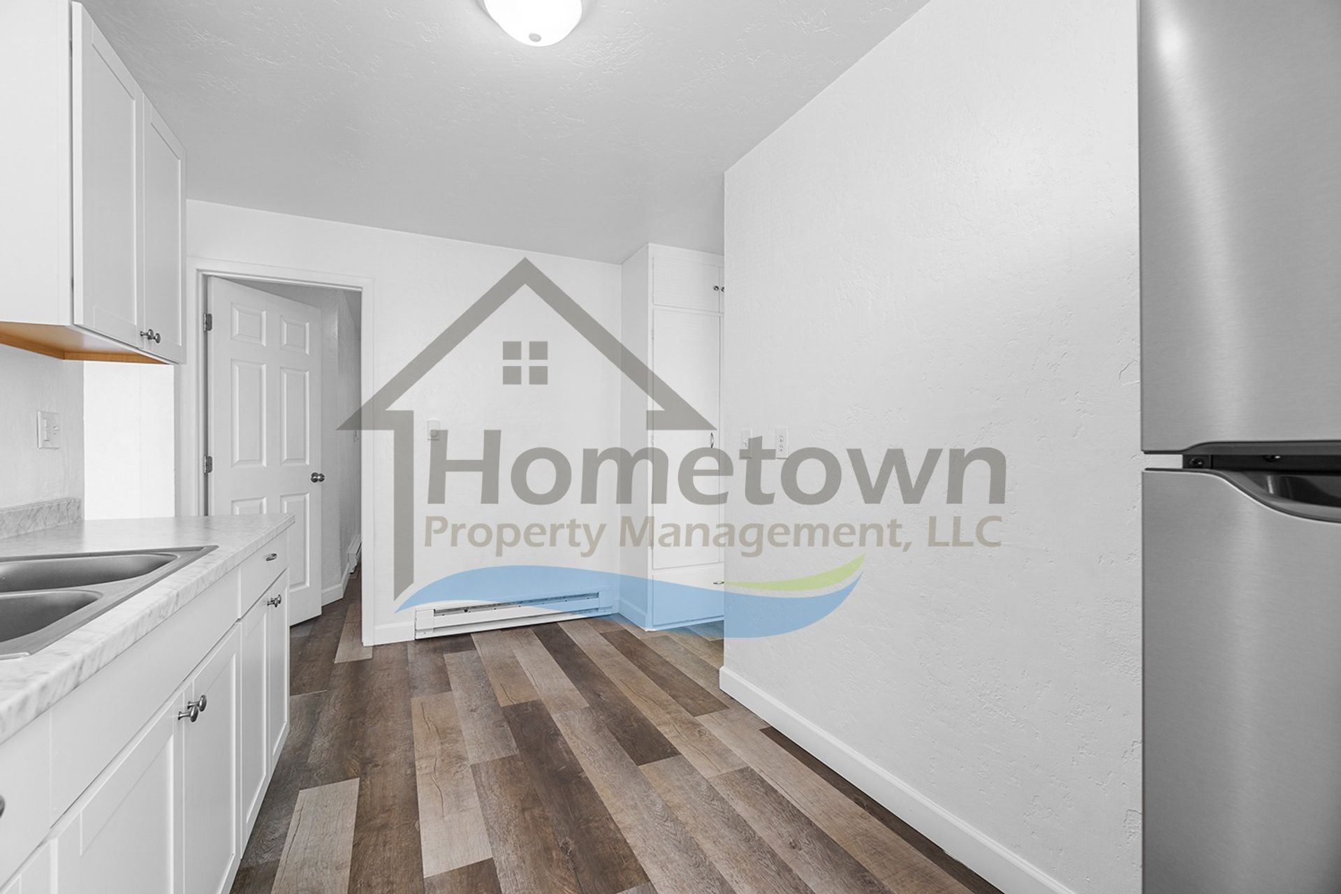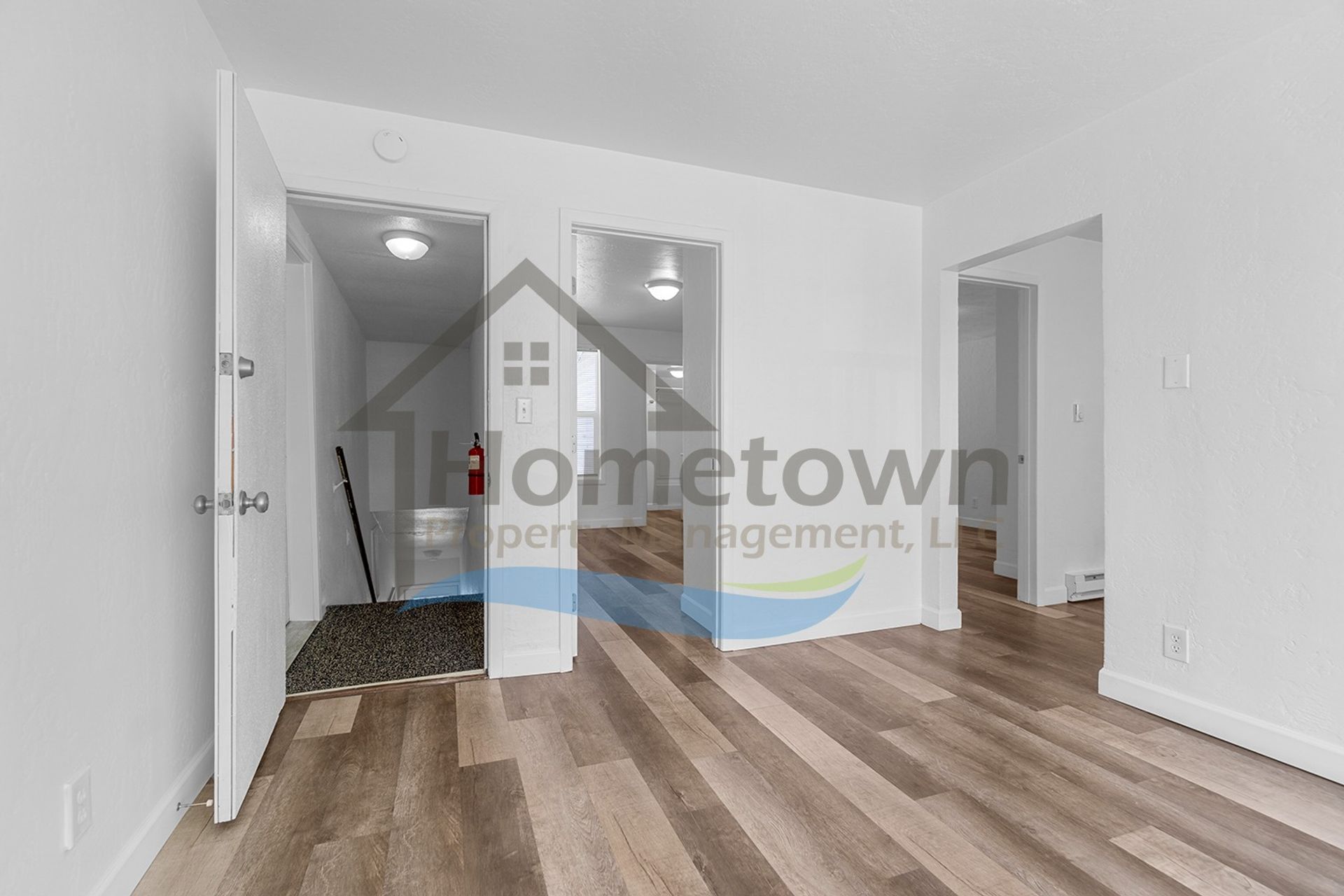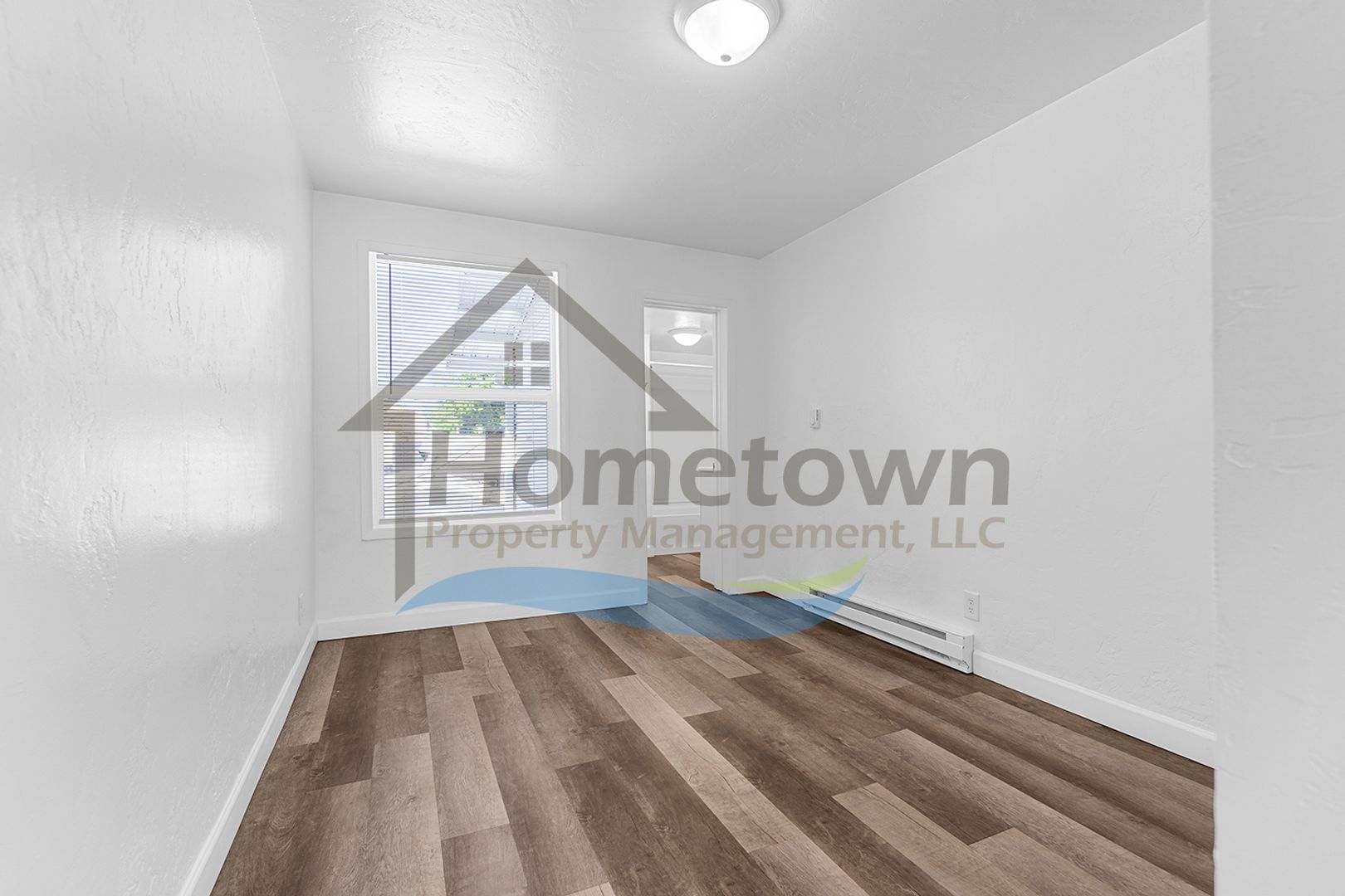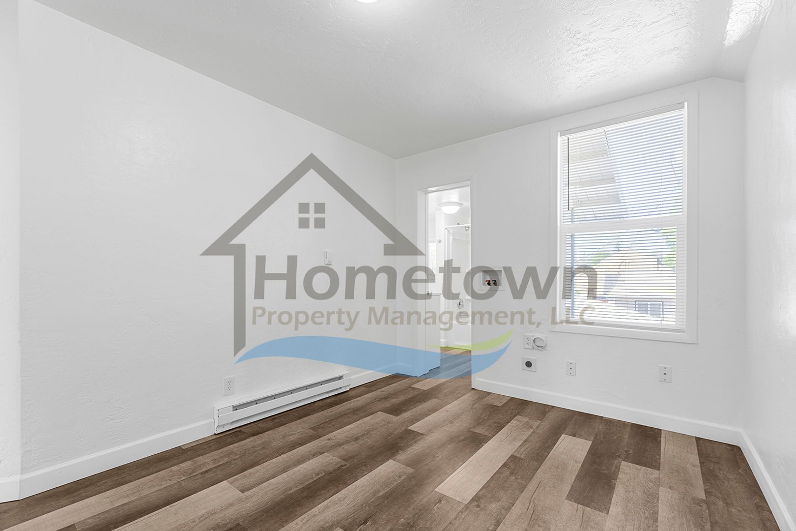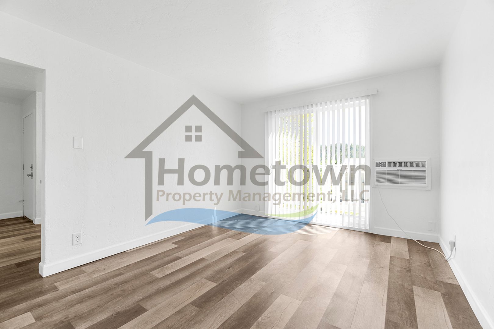 The home is heated with electric baseboard heaters. There is a wall-mounted air conditioner in the living room. All windows come with venetian blinds installed. Flooring throughout the home is luxury vinyl plank flooring. There is no yard work or landscaping to worry about.
