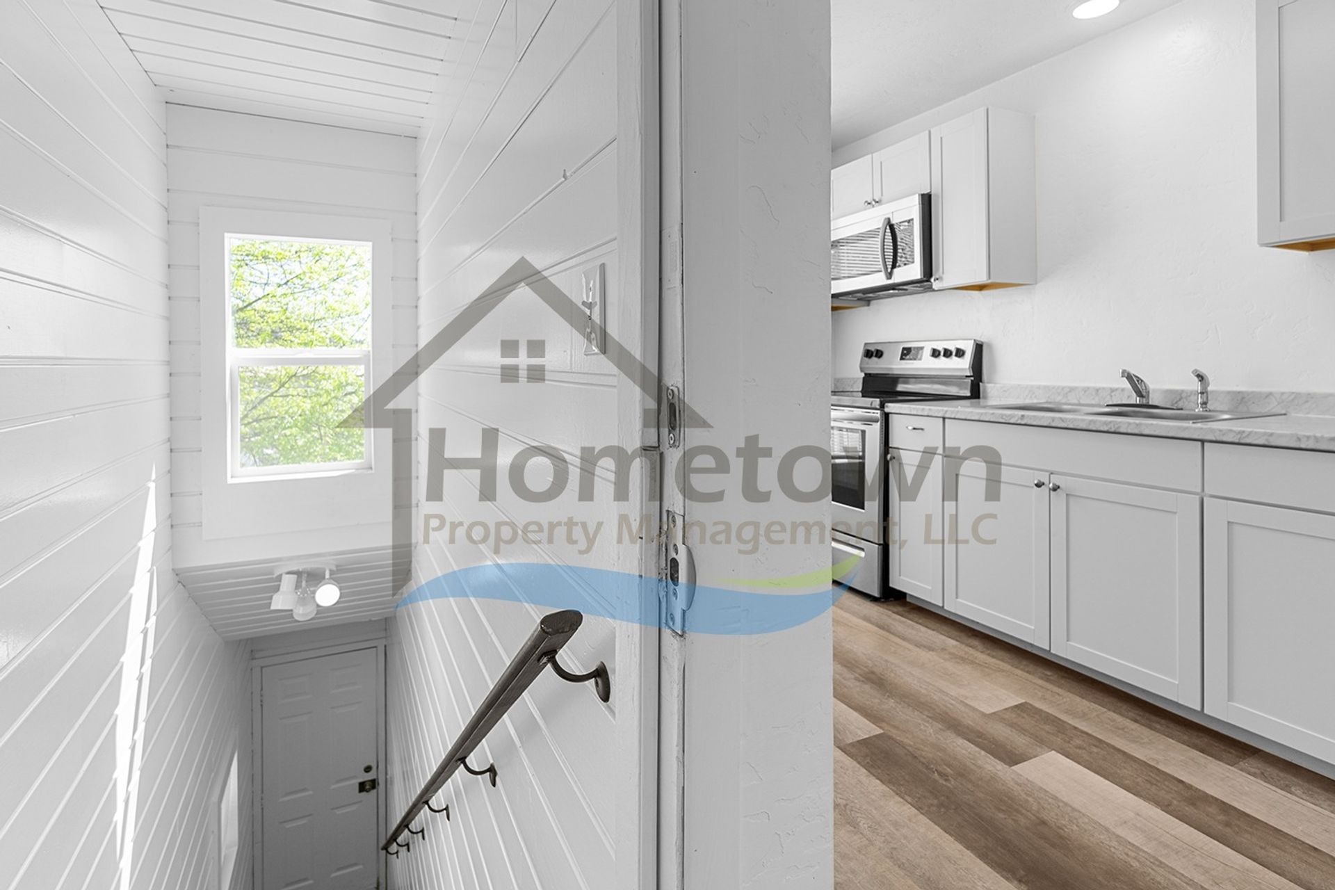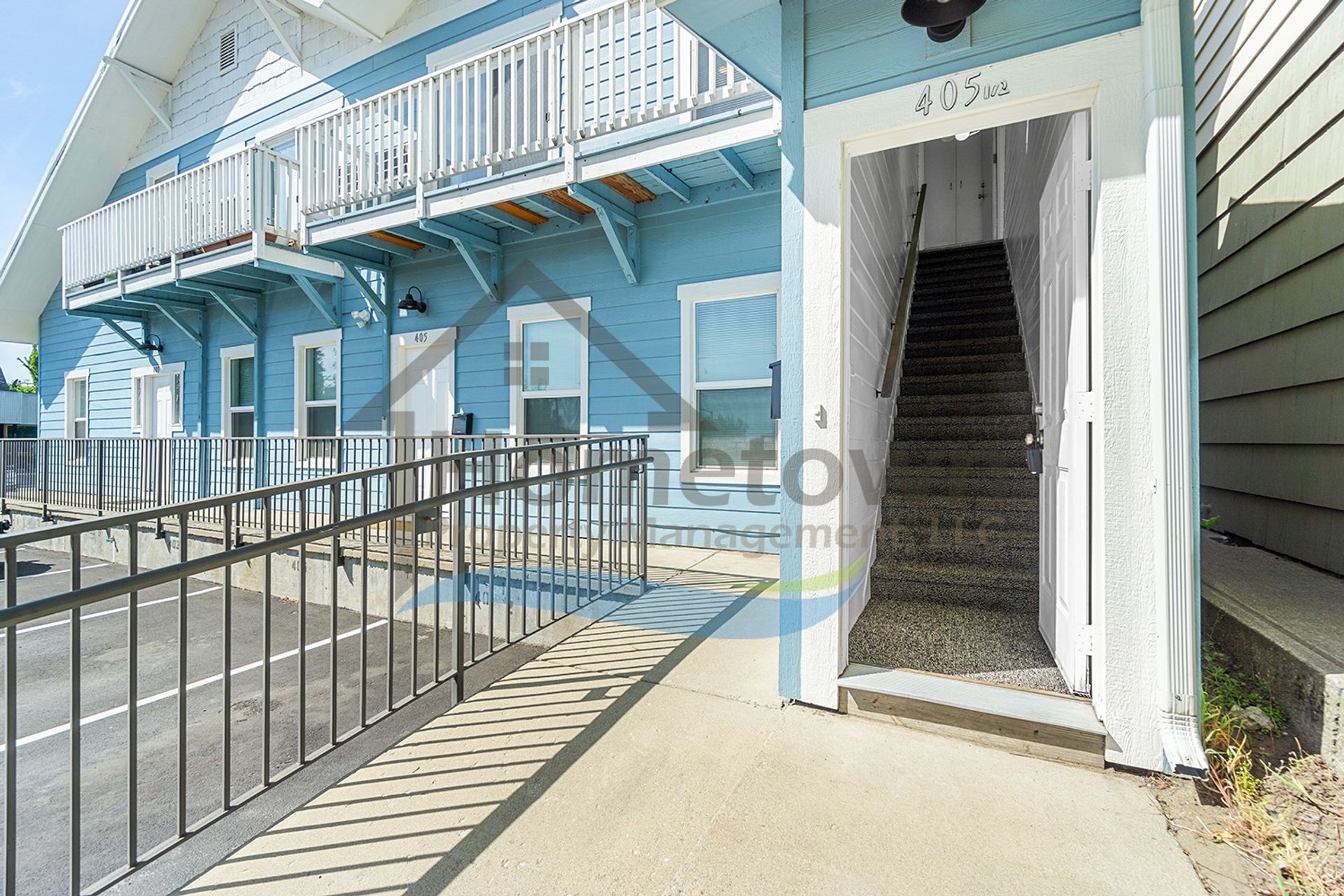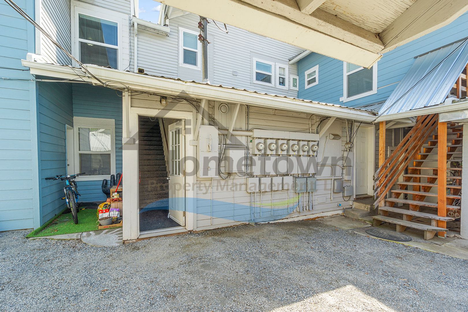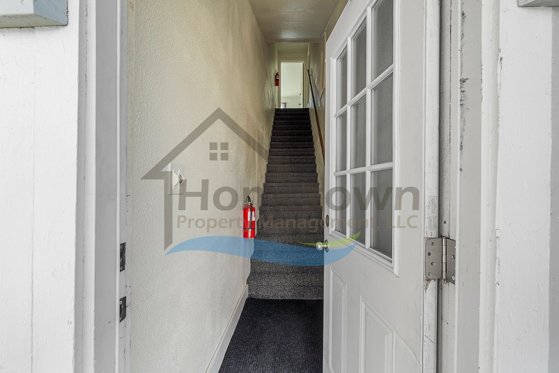 A secured exterior door opens up to an enclosed private staircase. This staircase takes you up to the second level of the building and to your front door. This door is also securely lockable.