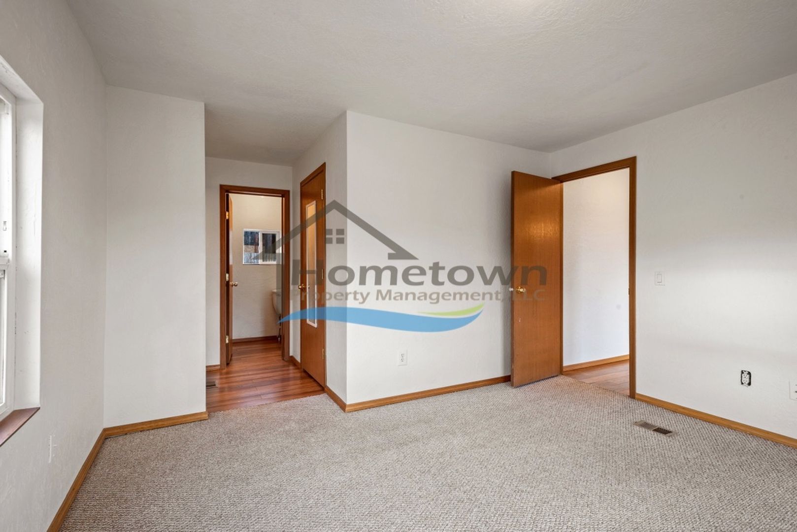 At the other end of the home, the master suite includes an ensuite bathroom with shower, double closets, and large windows. The guest bedroom and second full bath is just down the hall.