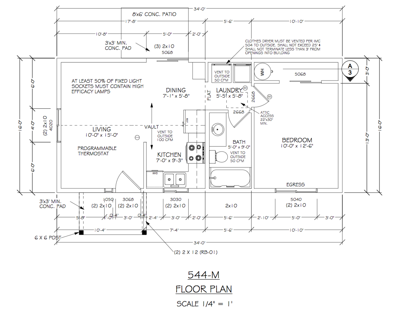 Electric cadet heaters in the bedroom, bathroom, and living room with adjustable thermostats for each. Concrete patio and private off-street parking area.