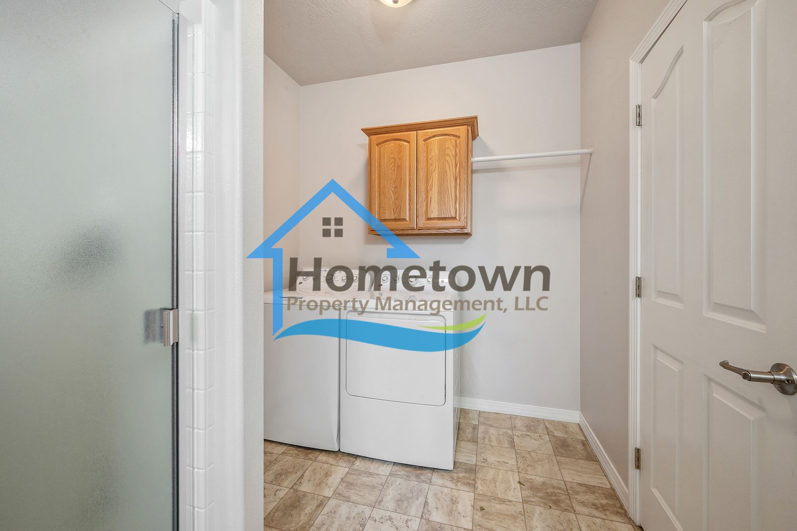 The family room, located next to the dining area, includes a storage closet and access to the guest bathroom, which also serves as the laundry room with washer and dryer hookups. Upstairs, the master bedroom includes a walk-in closet and a private full bathroom with a tub and shower combination and a vanity with storage. Across the hall, two guest bedrooms feature double-door closets and windows overlooking the front yard.