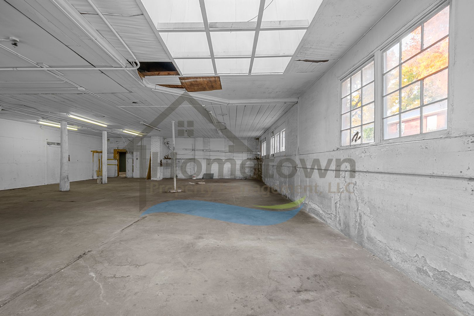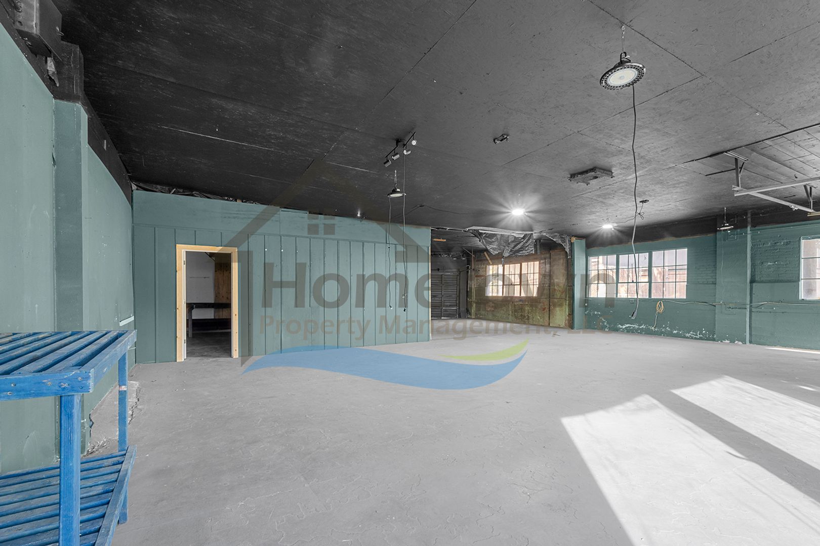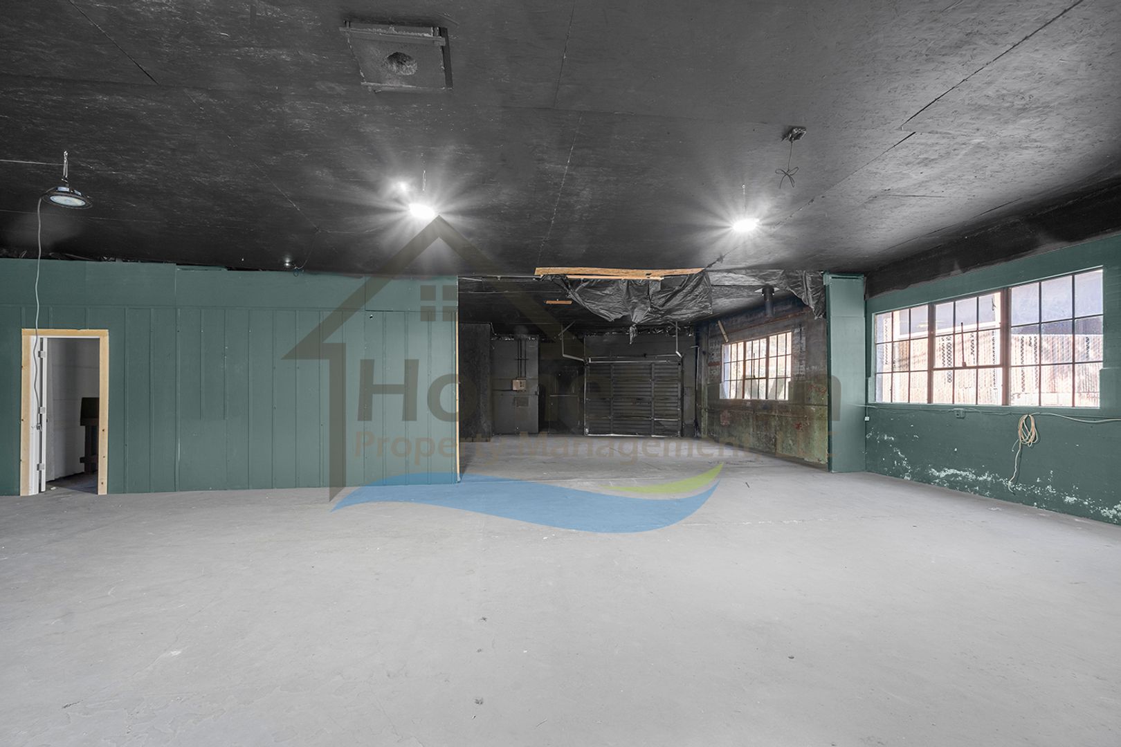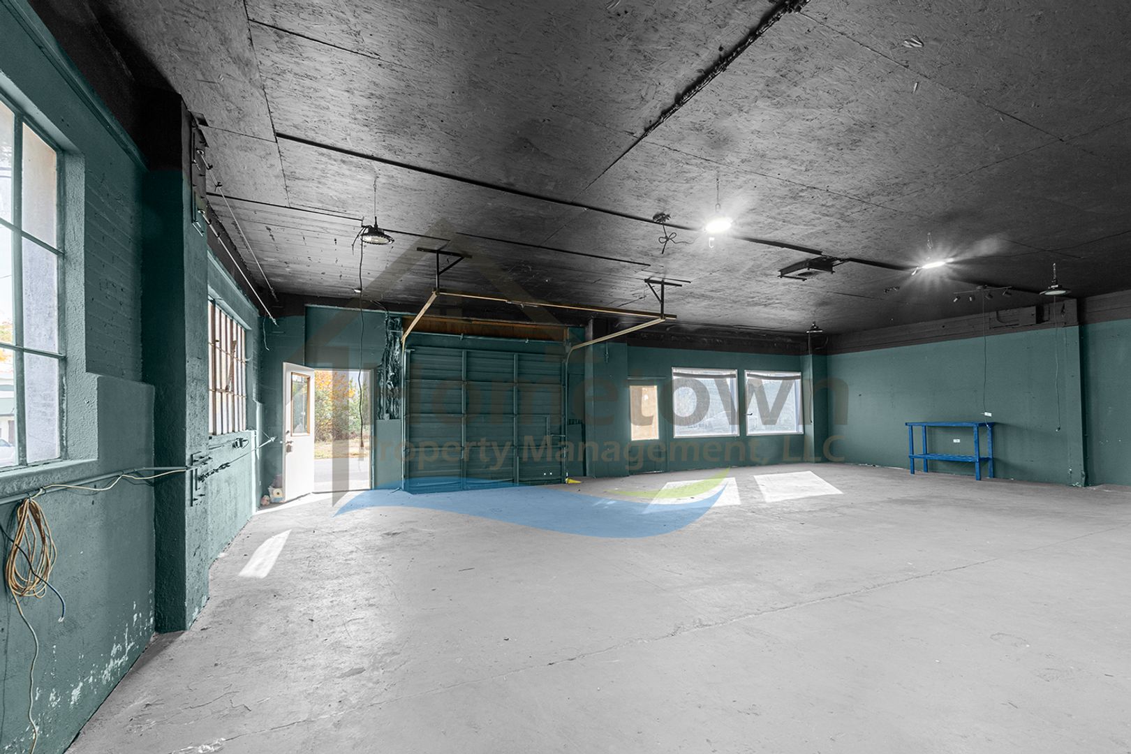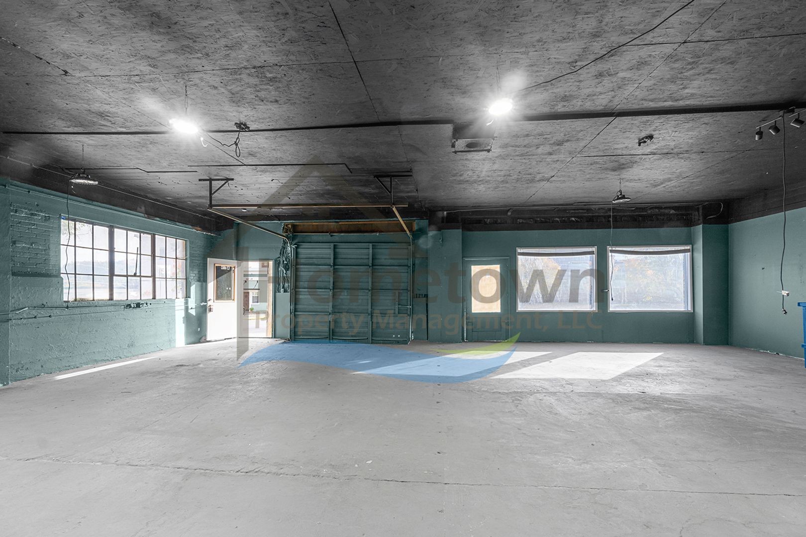 All square footage combined, this space features storefront windows, high traffic exposure on a busy street, three garage doors, two half bathrooms, sidewalk entry, and adjacent alleyway entry. Possible uses for this unit include retail sales, a shop, a showroom, an office, a classroom, a meeting room, a gym, an art gallery, and storage.