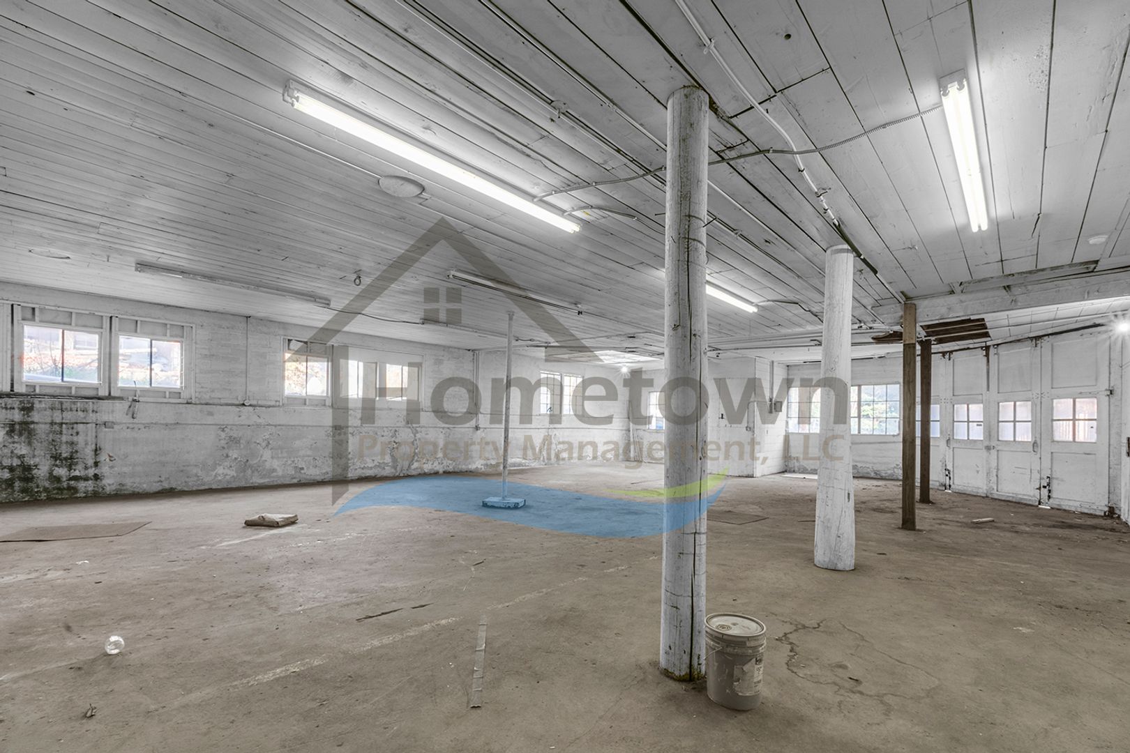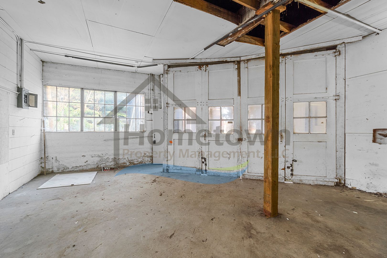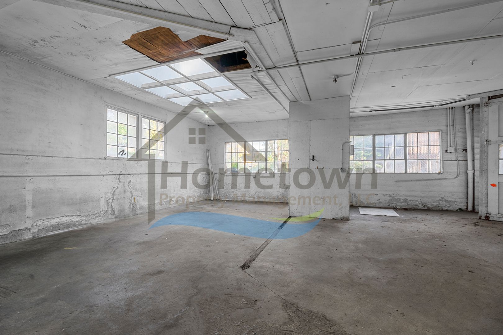 Unit B has its own personal door and a set of folding vertical garage doors which also open wide enough to allow large deliveries or small vehicles to be brought directly into the unit. Both of these doors are accessed through the alleyway adjacent to the building. This unit also has its own half bathroom, a storage room, rows of very large windows, and a skylight. These windows bring lots of natural light into the work space.