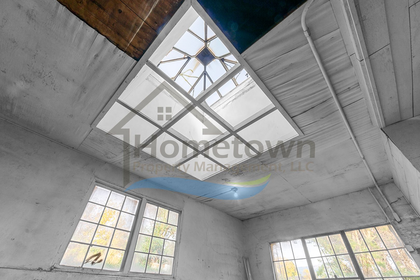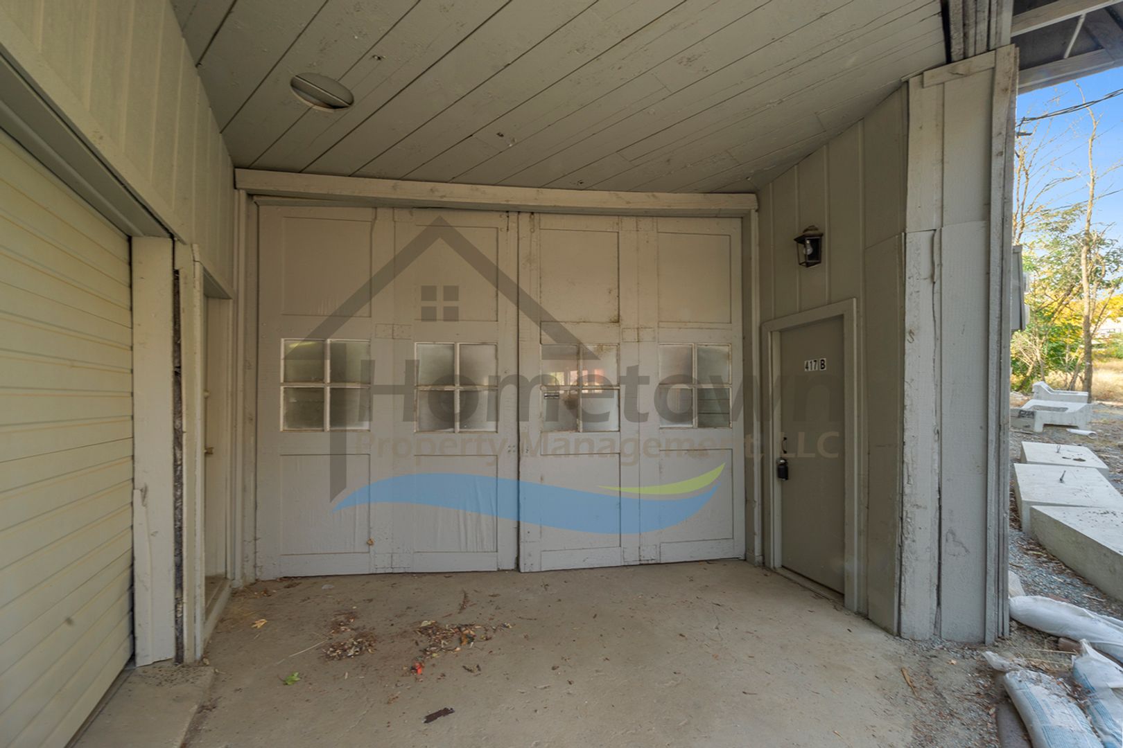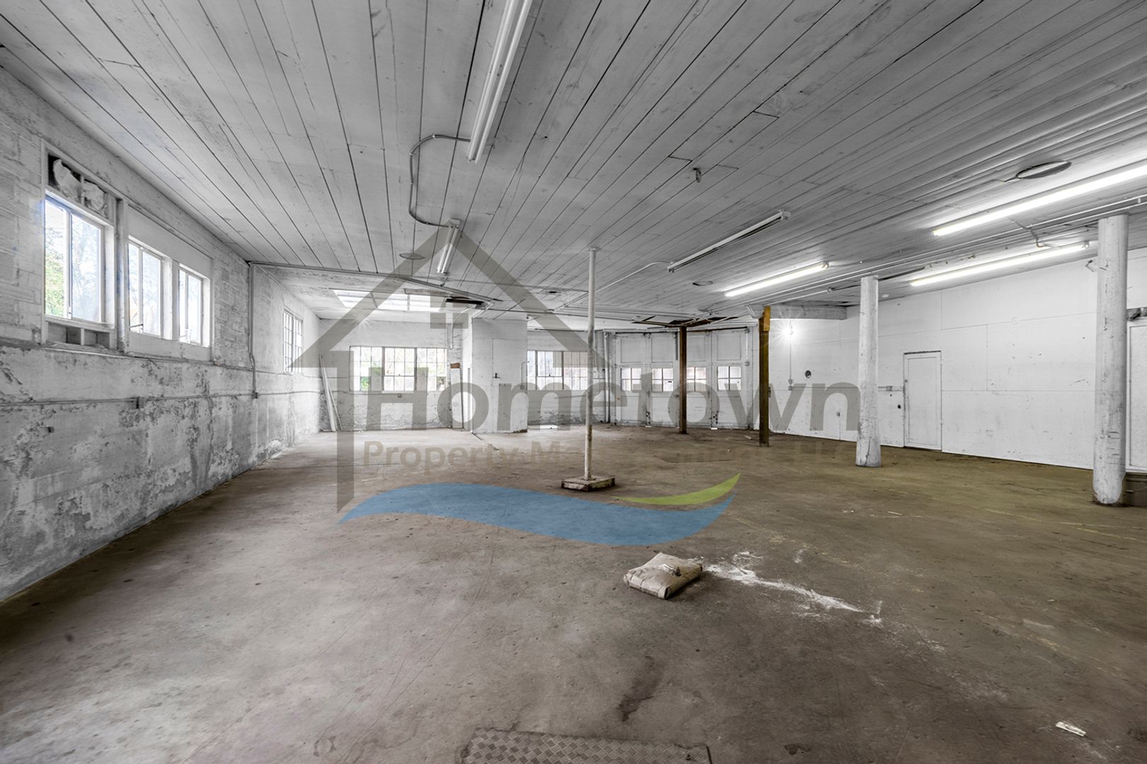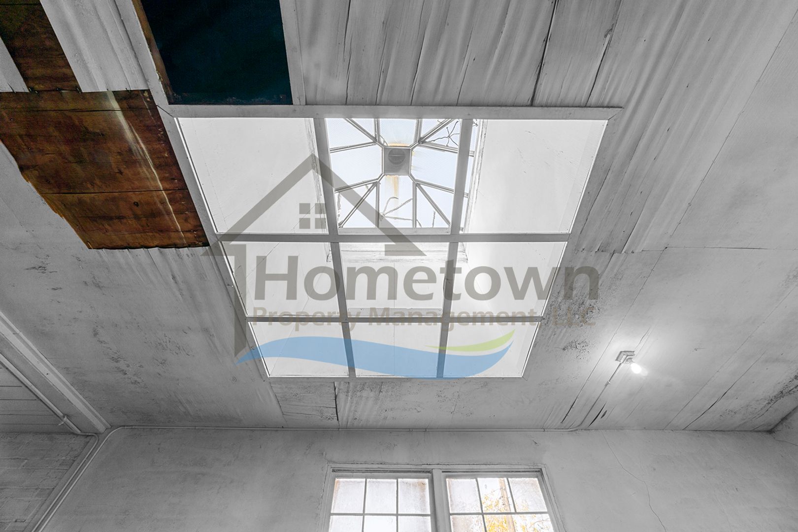 Unit B has its own personal door and a set of folding vertical garage doors which also open wide enough to allow large deliveries or small vehicles to be brought directly into the unit. Both of these doors are accessed through the alleyway adjacent to the building. This unit also has its own half bathroom, a storage room, rows of very large windows, and a skylight. These windows bring lots of natural light into the work space.