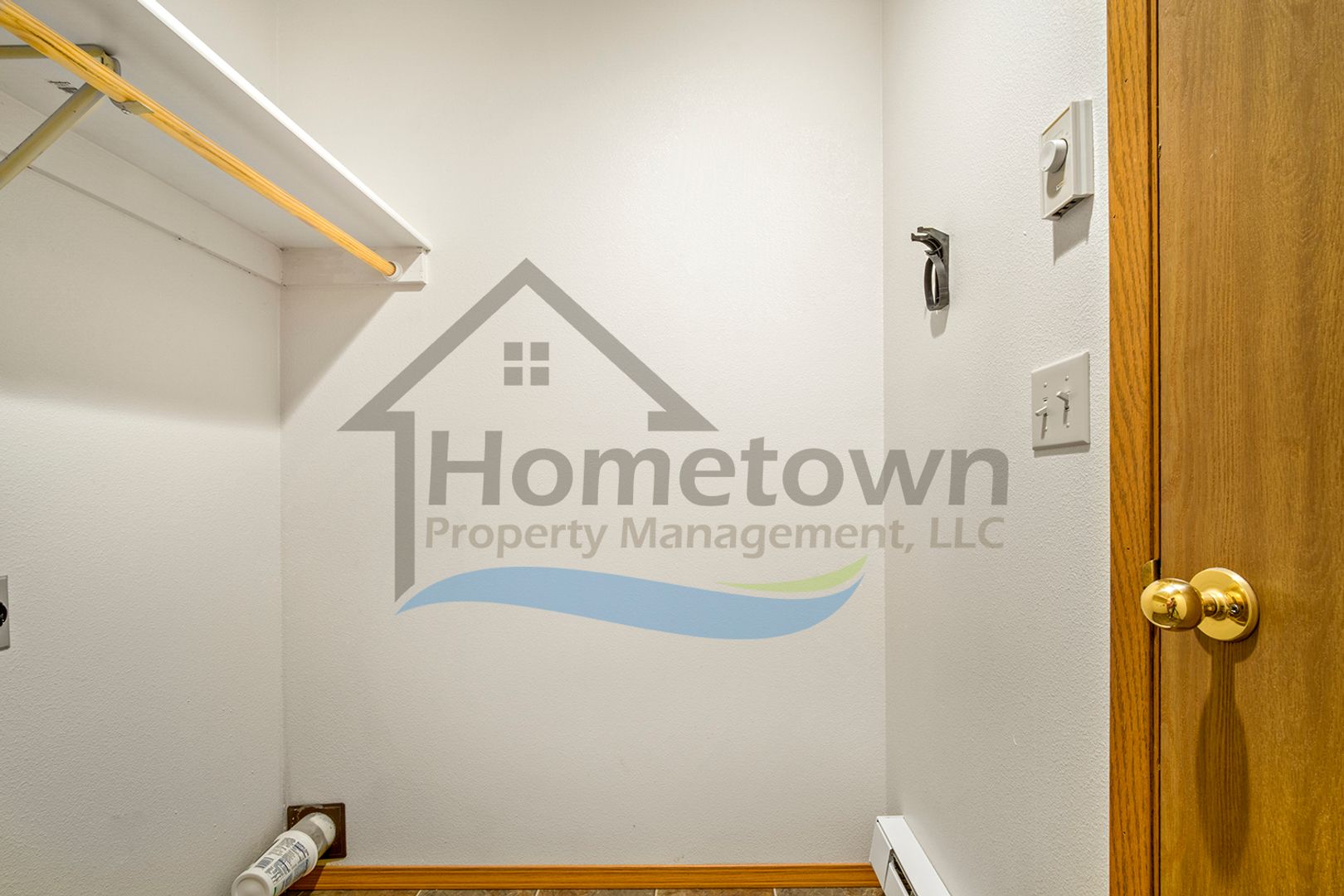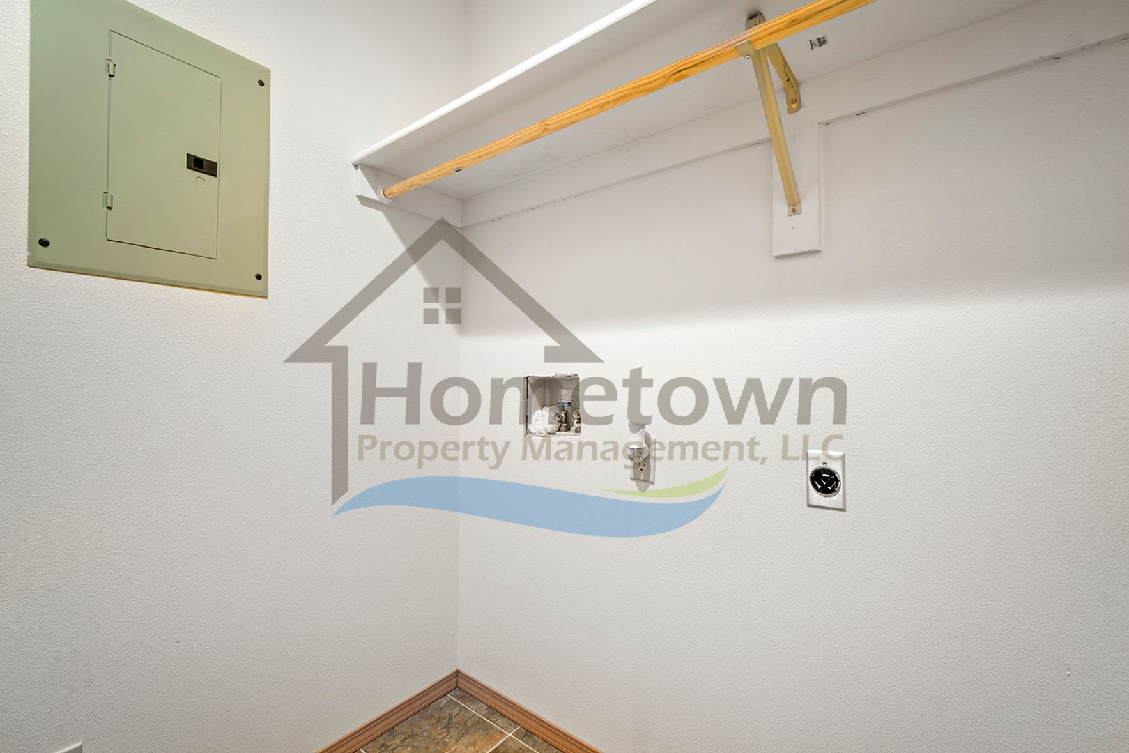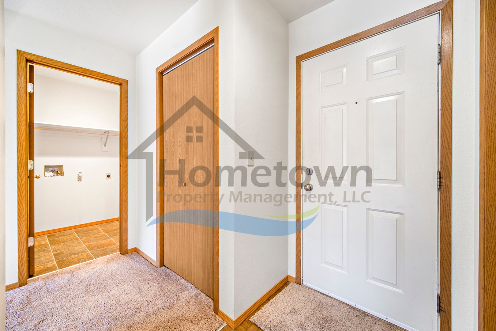 A covered flight of stairs takes you up to the entrance of the home on the second floor. The front door sits under a covered landing overlooking the parking lot. Initial entry into the home leads to a foyer. The kitchen, the living room, a closet on your left, a closet on your right, and a laundry room are all immediately adjacent.