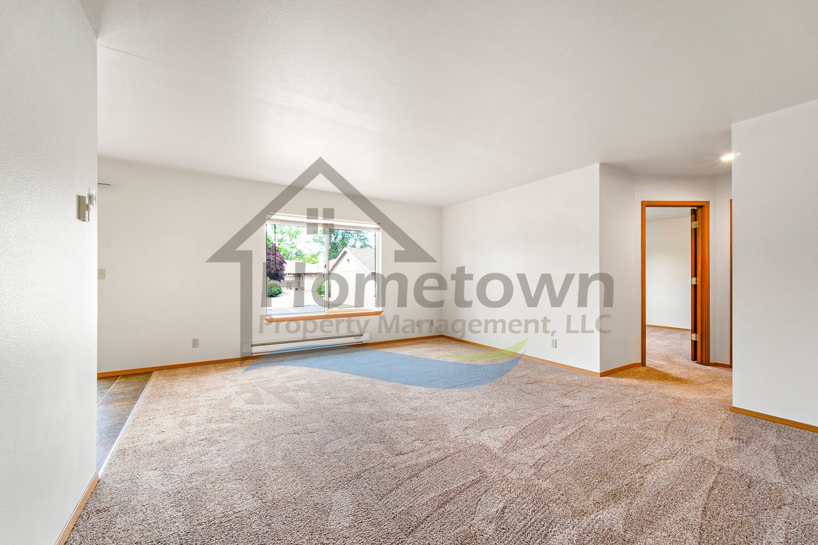 The living room is unusually spacious for a home of this size and features a large picture window facing north, allowing an abundance of natural light into the room.